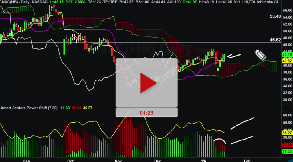 Now, it would be a little bit aggressive because it’s one day below the cloud and it’s got this massive uptrend that it’s been on. But it is a break of the cloud. Probably going to go let me see in the area of price action. Probably an area of $29.59 and then could potentially go all the way down to the area of $26.23.